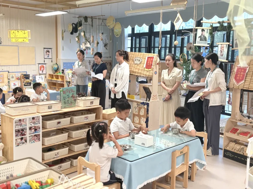 监测员分组进入小三班、中二班、大四班,以《深圳市高质量幼儿园过程性质量提升指导手册》为指引,分别围绕一日生活、学习环境、学习活动三个方面进行定点定岗观察。